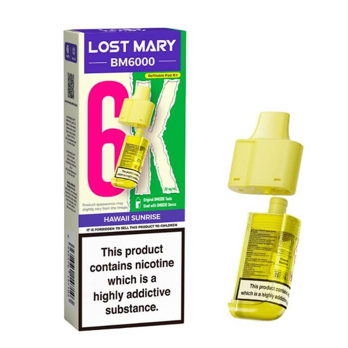 Experience the flavour of the islands with the Hawaii Sunrise Lost Mary BM6000 Refill Pack. Rich tropical taste, convenient use, and long-lasting satisfaction—all in one reusable refill kit.