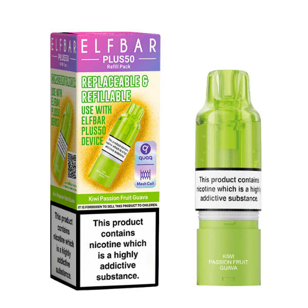FAQs – Kiwi Passion Fruit Guava Elf Bar Plus 50 Refill Pack