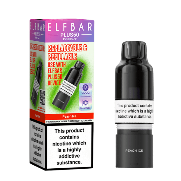 - 1 x Elf Bar Plus 50 10ml Refill Container – Peach Ice (20mg nic salt)
