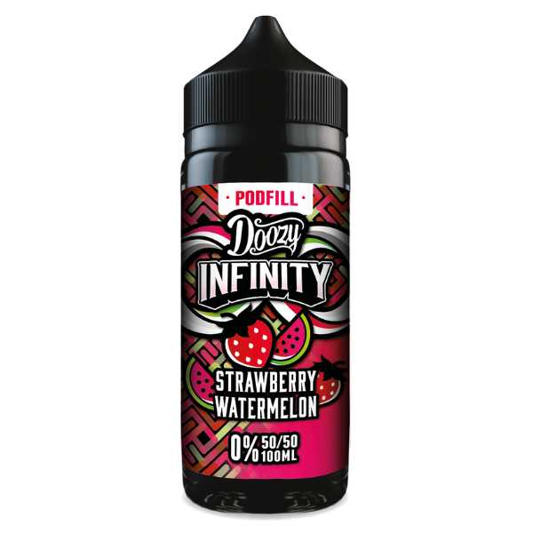 Strawberry Watermelon 50VG shortfill e-liquid by Doozy Infinity blends juicy strawberries with sweet tropical watermelon for a smooth and refreshing all-day vape.